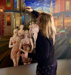 His next step brought him to Modern art. Greg explored the art of the Post Berlin Wall era attending Kunst Schule in Germany. There, he met many emerging and successful artists from the period. The new energy that these artists brought to modern art, especially Jörg Immendorff and Gerhard Richter became a big inspiration for Greg’s future work. Artists in the late nineties were open to critiquing and sharing each other’s art ideas and Greg feels fortunate to have been a part of that talented group. His style of art is mysterious and full of magic. This magic is produced combining realistic depiction and abstract dream feelings of philosophy, mythology, architecture and atmosphere.